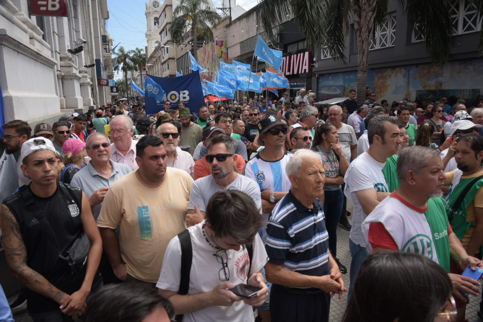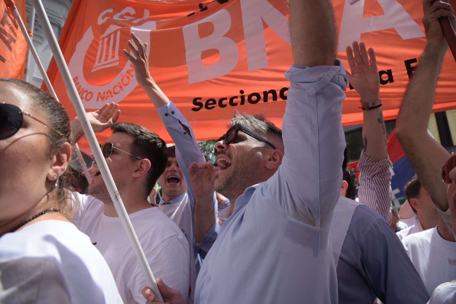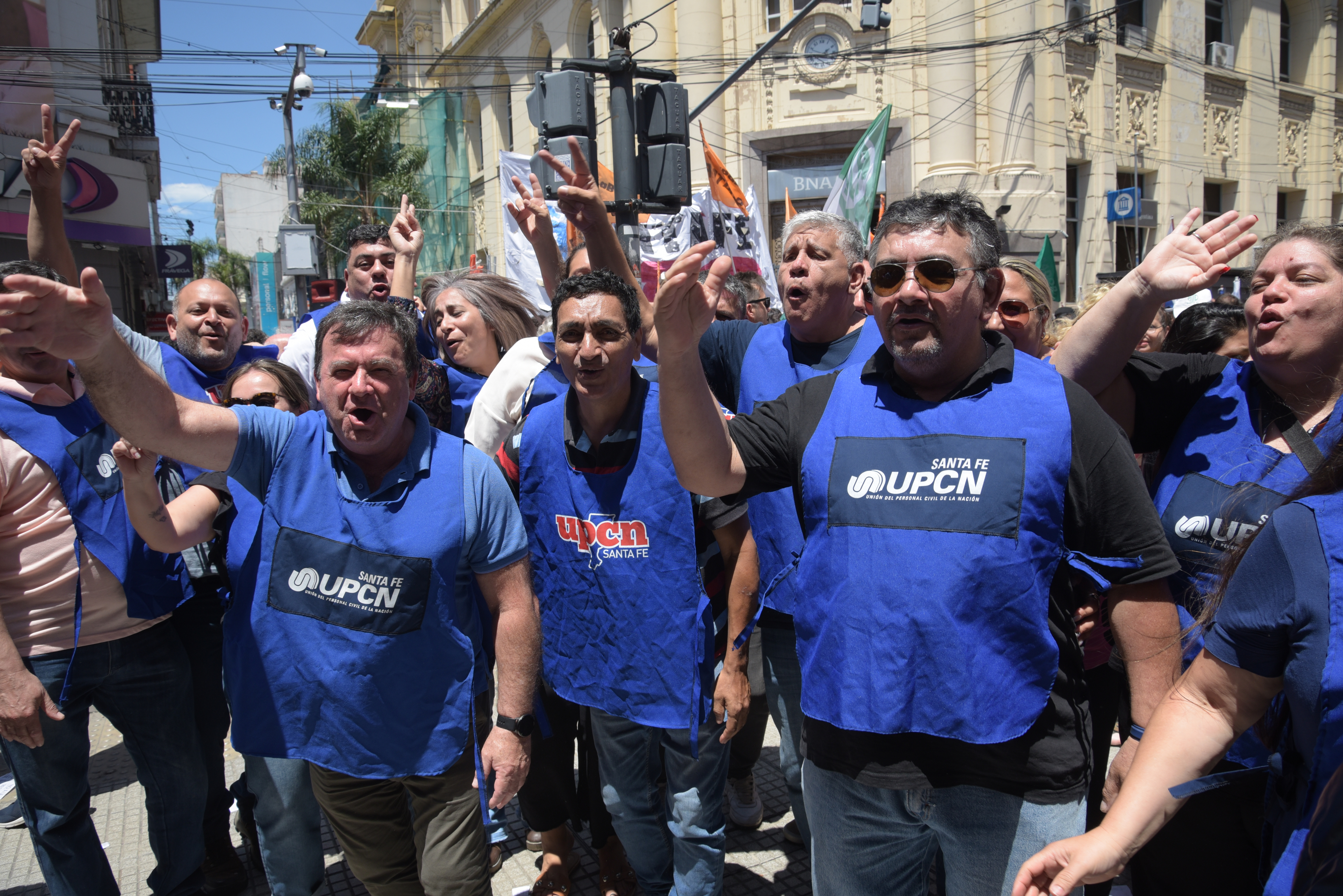Fotos: @pascuccihugo Miércoles, 27 de diciembre de 2023. UPCN secc SANTA FE. Abrazo al Banco Nacion y NO al DNU.
