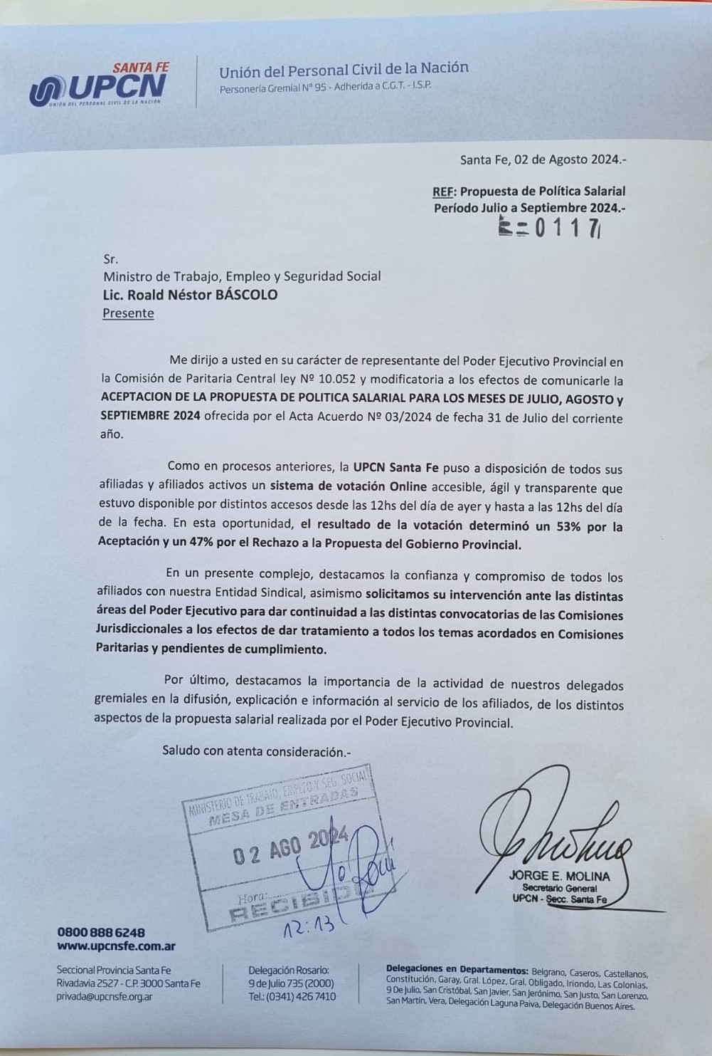 Cómo es habitual al existir una propuesta salarial del Poder Ejecutivo para los empleados públicos de la administración central trasladable a los afiliados y afiliadas pertenecientes al Convenio Ley 10.052, se puso a disposición el sistema de votación online que permite a todos los trabajadores activos afiliados de toda la provincia y Delegación de Santa Fe en CABA poder expresarse por la aceptación o el rechazo a la misma.