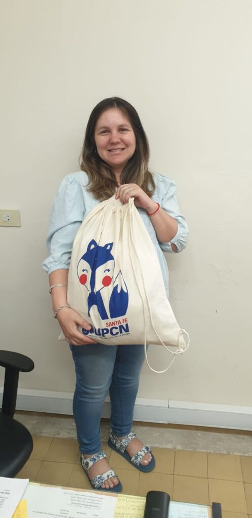 La mamá de Felipe es la compañera María Agustina Mendieta que cumple funciones en el Ministerio de Desarrollo Productivo y recibió su bolsón de nacimiento.