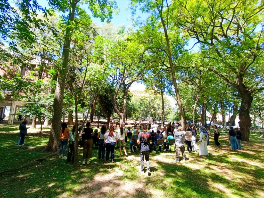 El acto por el día internacional de la eliminación de la violencia contra la mujer, se desarrolló en el jardín de la memoria situado en el Ministerio de Igualdad y desarrollo humano.