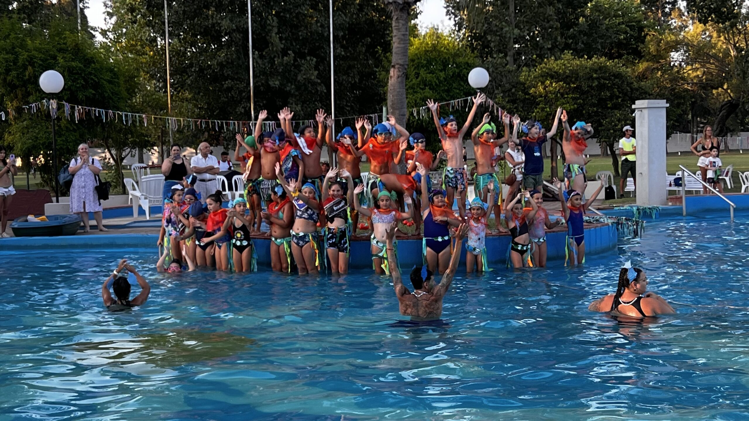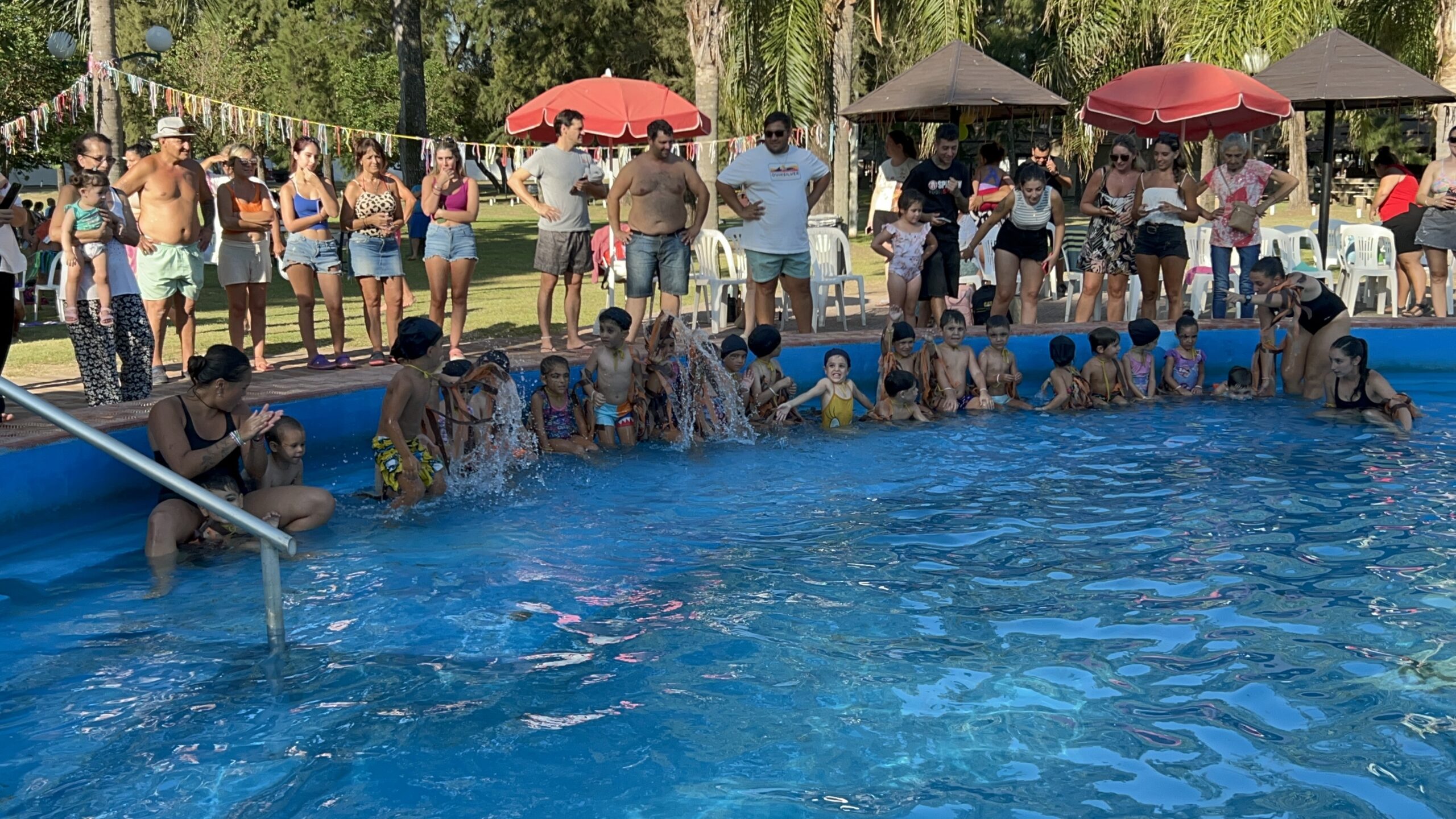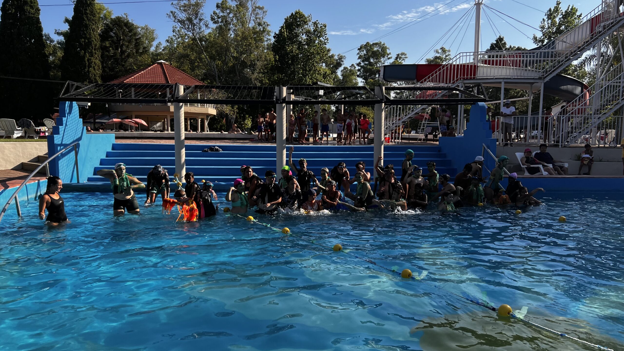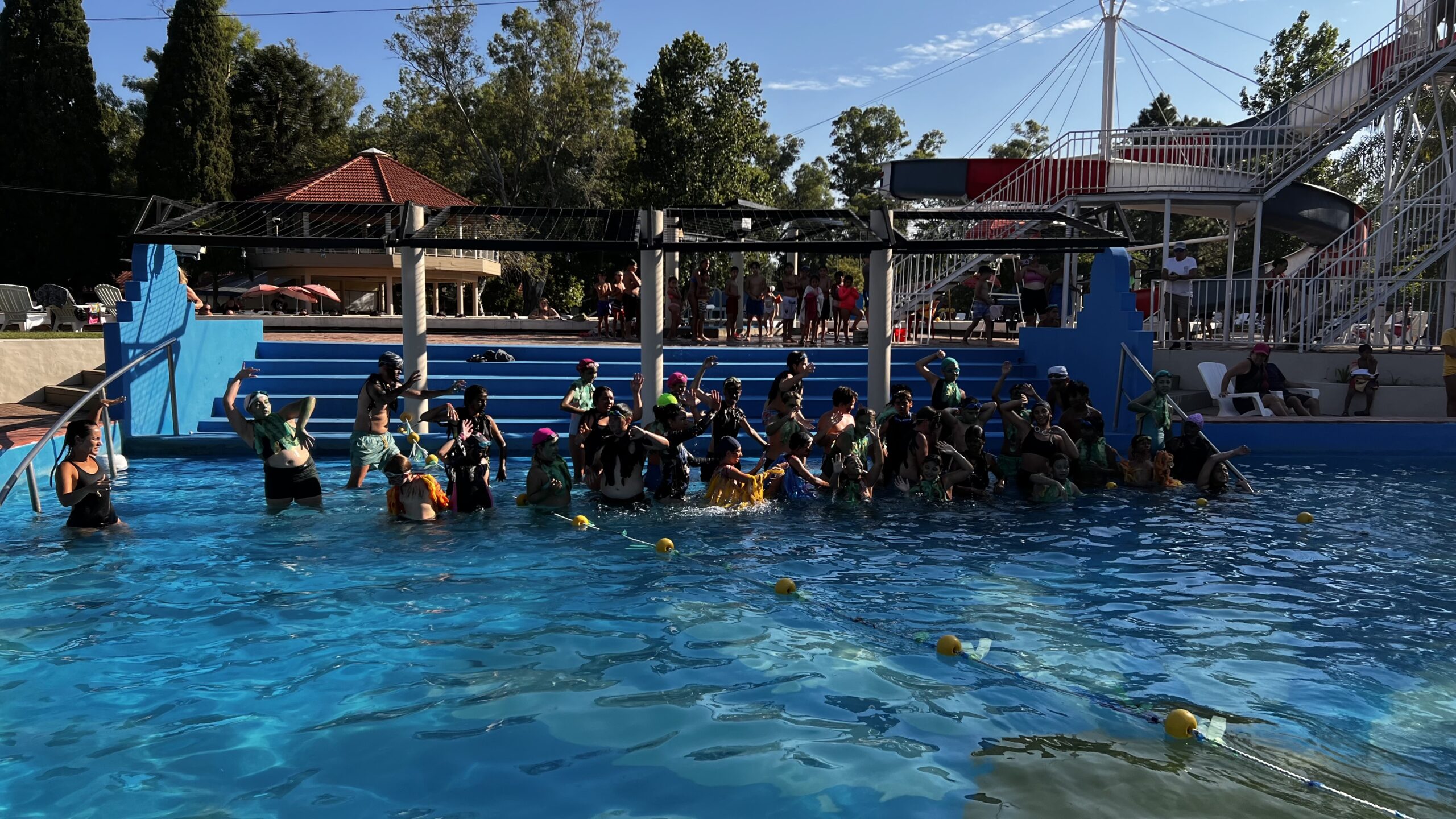 Los niños y niñas que participan de nuestra Colonia de Vacaciones disfrutaron de la tradicional Fiesta del Agua, donde compartieron con sus familias todo lo aprendido durante la temporada, demostrando sus habilidades acuáticas junto a sus profes.