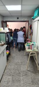 Posteriormente visitamos el comedor de la Escuela N.º 254, donde el equipo expuso su preocupación por el aumento de comensales. El servicio no solo atiende a la comunidad escolar local, sino que también brinda la copa de leche y raciones a otros establecimientos, por lo que la coordinación interinstitucional resulta fundamental para asegurar su correcto funcionamiento y la continuidad de la atención alimentaria.